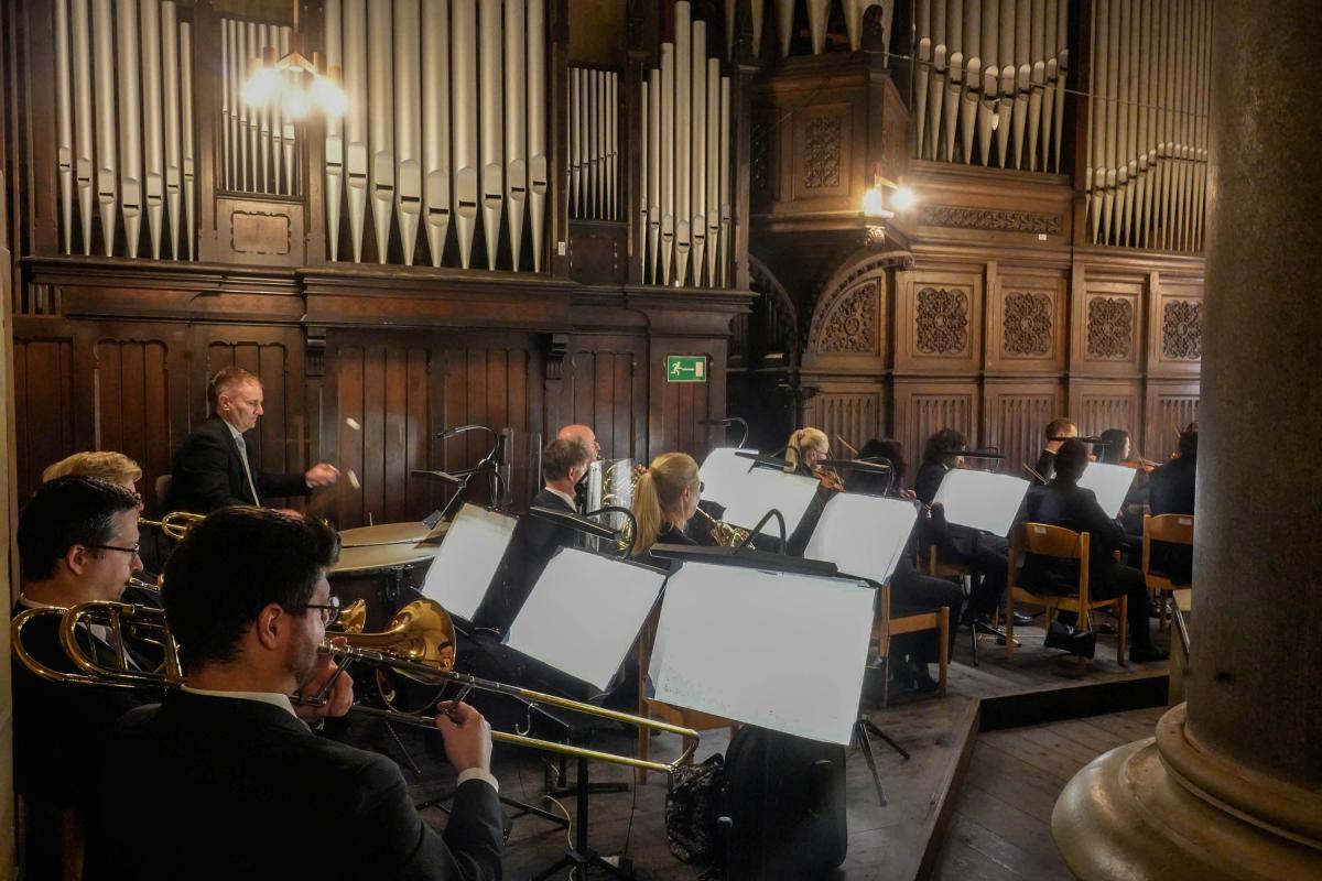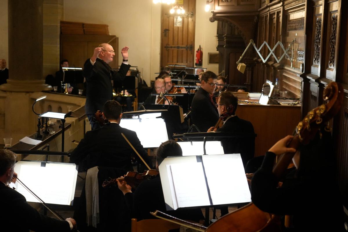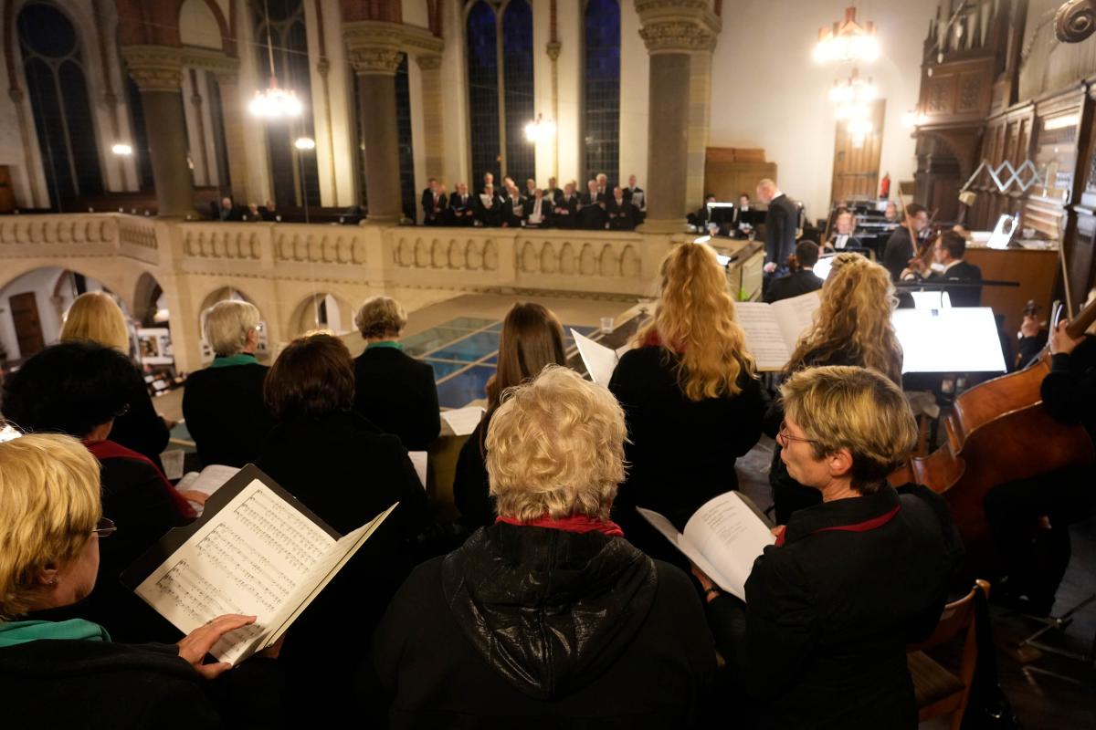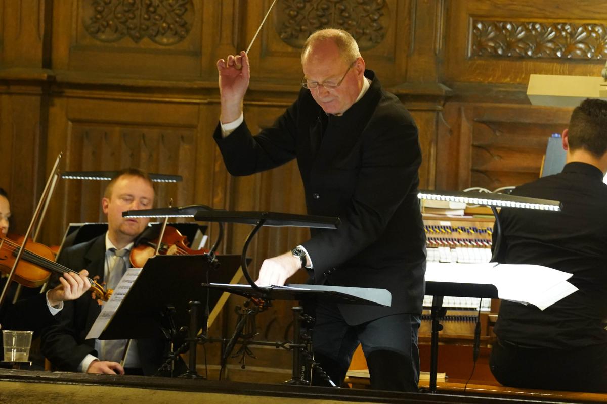 Die beiden Kantoren Martin Hesse (Gera) und Ralf Stiller (Greiz) hatten ein Chor-Orchester-Programm besonderer Vielfalt ausgewählt. Hauptwerk des Abends war das „Erste Konzert für Orgel und Orchester“ von Richard Bartmuß. Kantor Martin Hesse als Solist und die Vogtland-Philharmonie Greiz Reichenbach führten das Werk unter der Leitung von Kantor Ralf Stiller aus Greiz auf. Im Schlussteil krönte ein Chor das Werk. Durch Blasinstrumente und Pauke erhielt diese Komposition eine ganz besondere Festlichkeit, die mit sanften Wellen durch den Kirchenraum hallte. Auch die weiteren Werke des Abends, Psalm 150 des französischen Komponisten César Franck sowie das berühmte Streicher-Adagio von Samuel Barber und die sanfte Vertonung des „Verleih uns Frieden“ von Felix Mendelssohn-Bartholdy passten sich hervorragend in das Konzertprogramm ein. Die zahlreichen Besucher bedankten sich mit langanhaltendem Beifall bei den Musikern, den Chorleuten und den beiden Kantoren. (Fotos: Wolfgang Hesse)